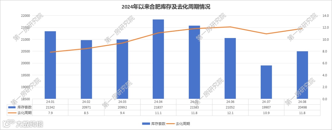 库存方面,7月份库存最低,降至2万套以内,但是8月份库存又开始增加,从去化周期来看,尤其下半年库存相对较低,但是去化周期在增加,这也说明新房销售在减少。