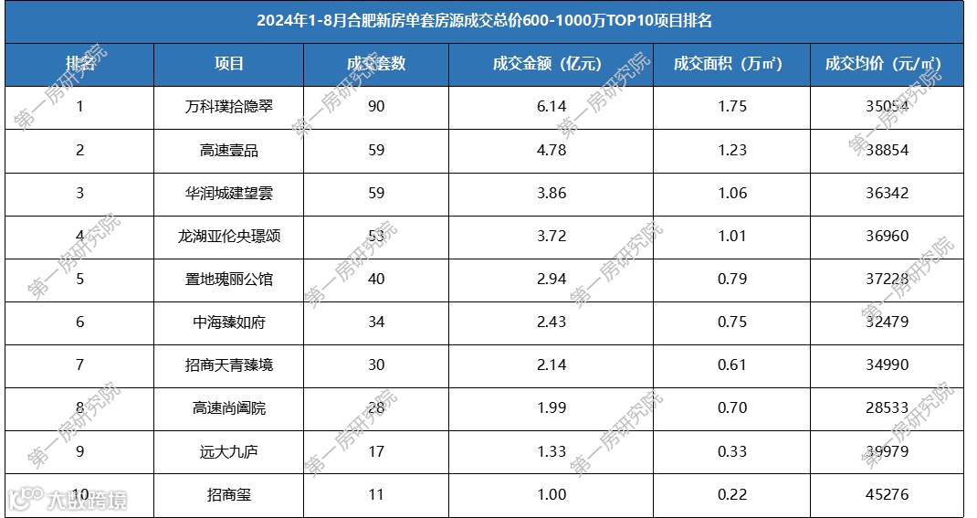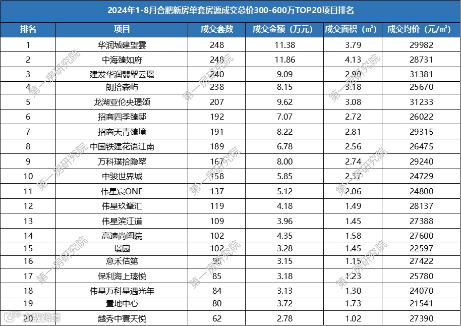 最后来看下300-600万房源成交榜单,这个总价段房源基本上是合肥改善产品基本上都能达到这个价格,尤其是今年以来新盘,户型基本起步140㎡,价格在2万多,因此这个也是普通改善的门槛。