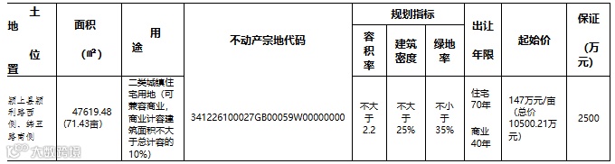 颍上县暂定9月20日拍卖1宗涉宅用地,面积71亩