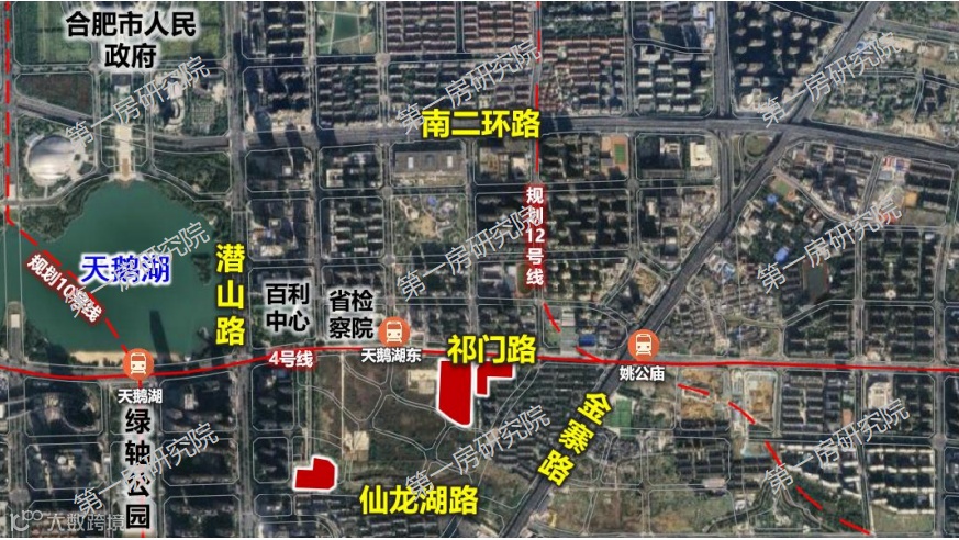 距离合肥南站仅1.8km,紧邻南二环路和宿松路快速路、祁门路主干路,临近地铁5号线站点,交通便利;临近绿地大融城,距离安粮城市广场1.5km,商业氛围浓厚。周边竞品有伟星天元、中海臻如府、红达现房项目,以及上个月保利16号地块以及伟星13号地块。