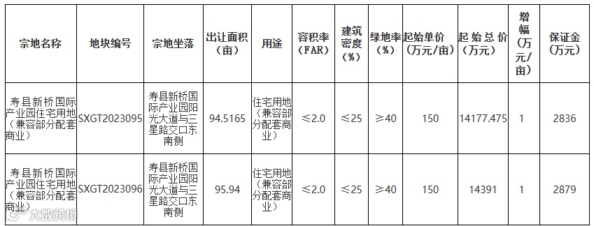 寿县暂定12月7日拍卖2宗涉宅用地,面积190.46亩