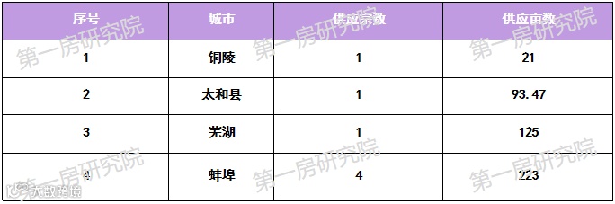 本周安徽省16地市中涉宅用地挂地城市不多,共4个市县挂地,挂地宗数7宗,总面积462.47亩。