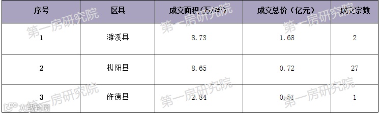 成交方面,有3个市县成交,成交宗数30宗,成交总价2.9亿元。