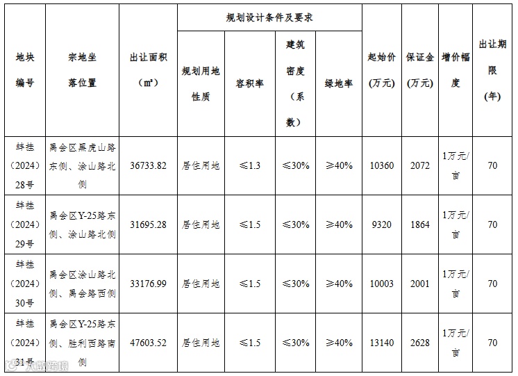 具体公开出让方式由蚌埠市自然资源和规划局于2024年9月4日17:30前告知取得竞买资格的申请人。
