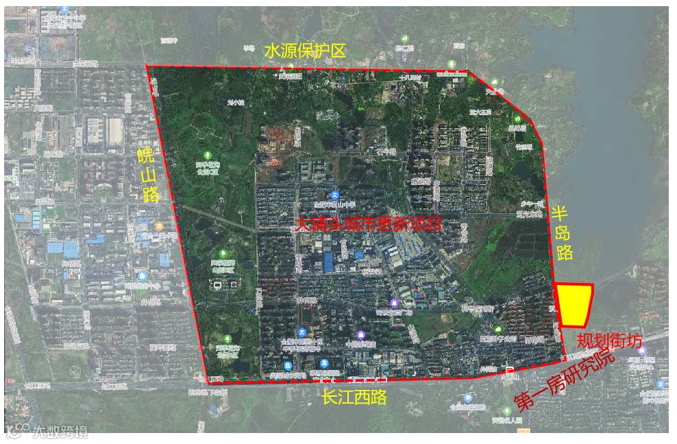 该规划街坊西侧即是大铺头城市更新项目,将进行科技创新与生态优势引领下的城市更新,需进行整体层面上的城市深化设计和研究,重点针对尚未开发建设区域、拆除区域和待整治区域开展深化设计。目标是形成面向全球的国际科创示范区、面向全省的城市更新样板区、面向科学岛的科创走廊门户。