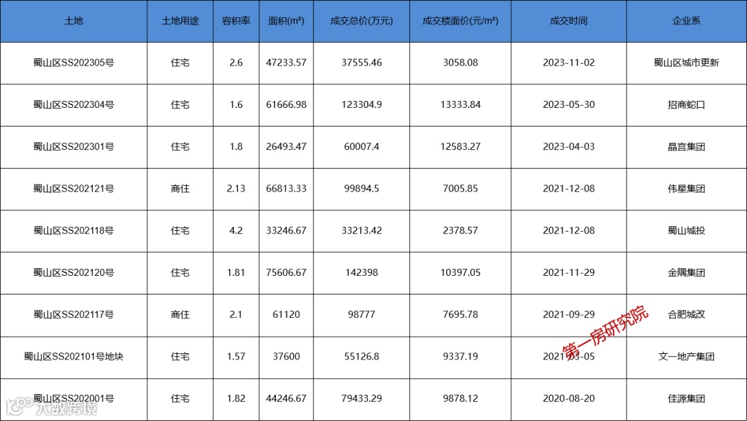 蜀山区大铺头片区近年来供地节奏较为缓慢,2020年仅一宗地块,2021年5宗地块,2022年无供应,今年供应三宗地块,其中包含一宗安置房用地。而从近几年成交地块楼面价来看,2021年楼面价已突破1万/㎡,而最近招商拿地楼面价已达到1.3万/㎡。