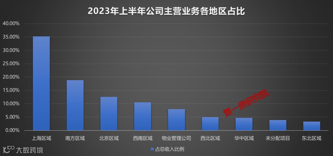 万科的业务分布广泛,坚持“为普通人盖好房子,盖有人用的房子”,在巩固住宅开发和物业服务固有优势的基础上,业务已延伸至商业、长租公寓、物流仓储、酒店与度假、教育等领域。分产品来看,2023年上半年公司主营业务中,房地产销售收入收入1843.62亿元,占营业收入的91.77%,毛利润19.31%。分区域来看,上海区域、南方区域和北京区域占据前三名。