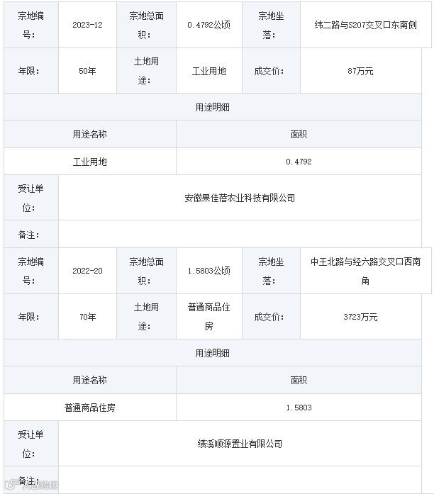 绩溪顺源置业拿下绩溪县1宗居住用地,成交价3723万元