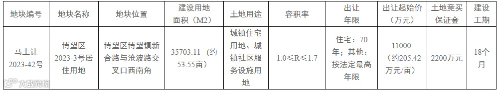 1.马土让2023-42号地块如本次出让公开方式转为挂牌,报名申请截止时间延长至2023年9月12日16时,交纳竞买保证金截止时间相应延长至2023年9月12日16时。挂牌时间为2023年9月1日10时至2023年9月14 日16时,地点为马鞍山市公共资源交易中心5楼拍卖厅。
