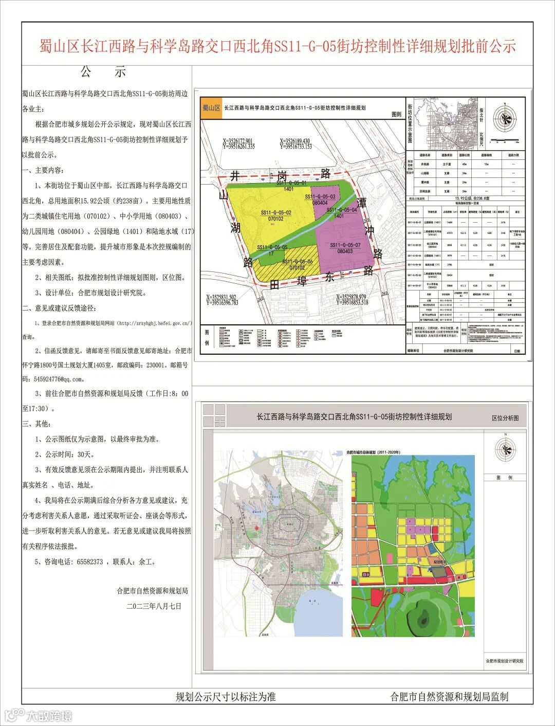 蜀山区长江西路与科学岛路交门西北角SS11G-05街坊控规出炉!