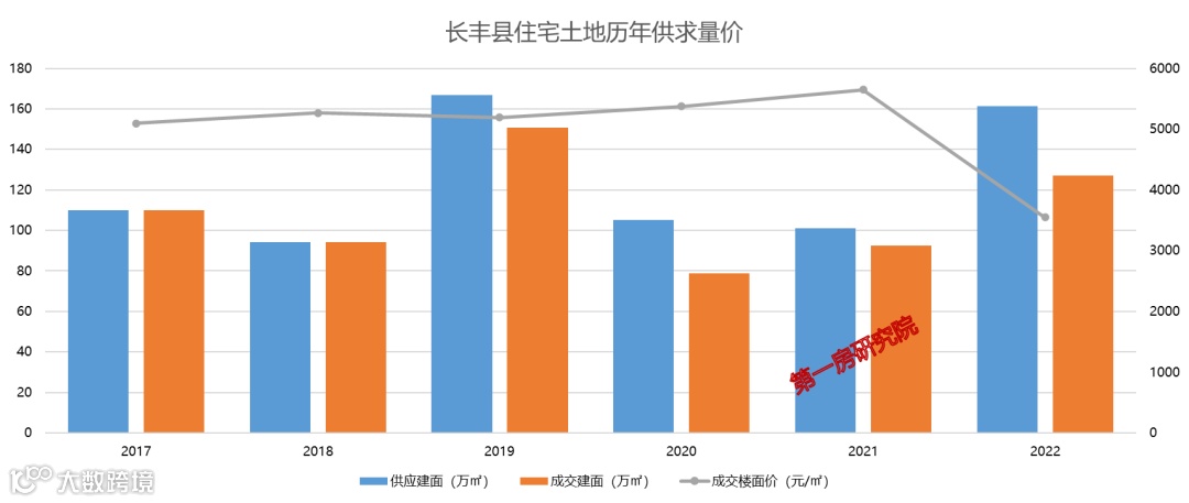 近6年长丰县年均供应126.1万㎡,年均成交108.8万㎡,供应成交率为86.3%。