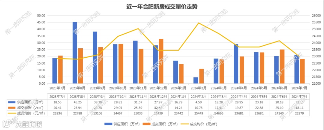 根据第一房研究院Ai楼市指数系统统计数据显示,2024年7月合肥新房市场量价齐跌,这也是今年新房市场自2月份以来,再次出现环比下跌。受整体市场下行影响,自517以来,虽然出台一系列刺激政策,但效果并不明显,7月份LPR降到历史新低,合肥首套房和二套房利率降至3.35%,多重利好刺激,新房市场依然出现下跌,一方面是购房者对于市场观望情绪依然较浓,另一方面是合肥新房市场结构发生变化,目前新房以大户型改善为主,刚需购房者可能考虑更多的是性价比更高的二手房。