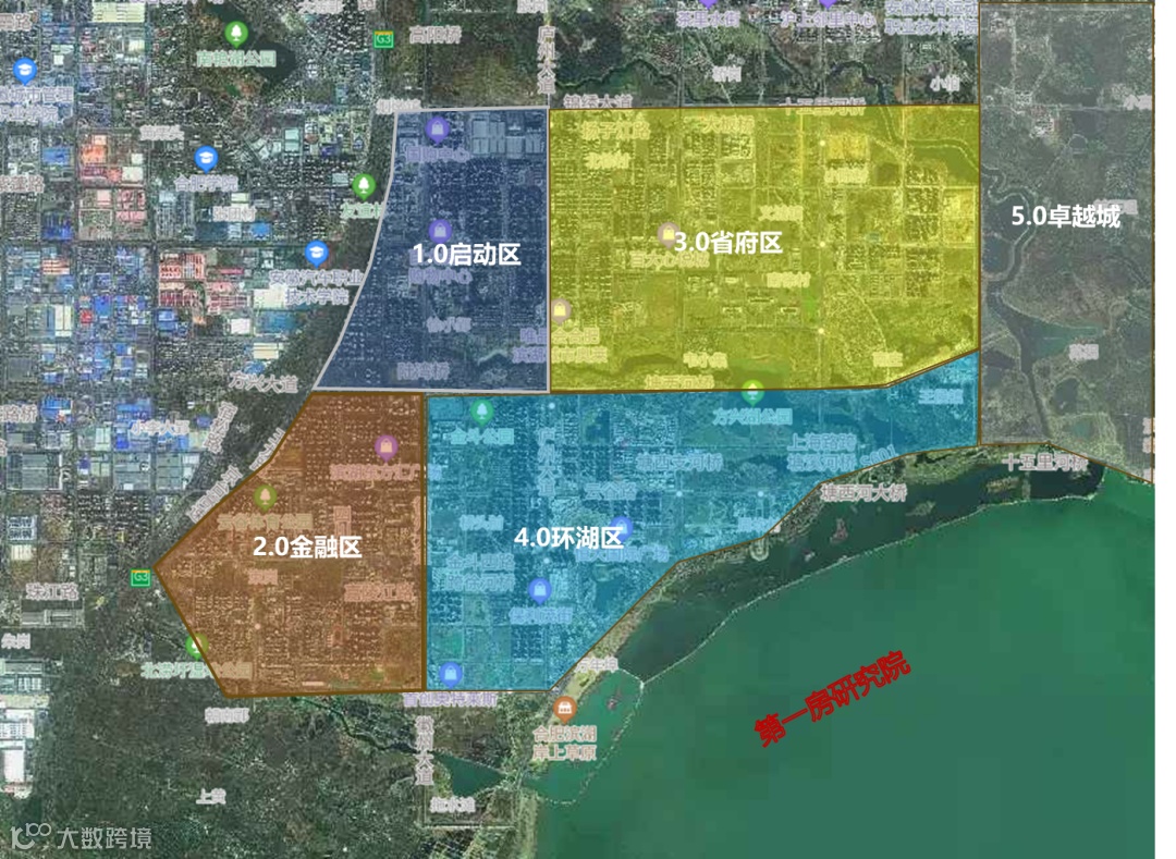 常规来说,我们将滨湖区分为四个板块,分别是1.0滨湖启动区、2.0金融后台区、3.0省府行政区以及4.0环湖商务区。但随着四大片区可开发区域愈来愈少,政府也在考虑扩张发展,于是滨湖向东打造了5.0卓越城,往南则规划了安徽科技大市场科技成果转移转化基地,这也是合肥产业布局“一心、一谷、一镇、三区”中的三区之一。