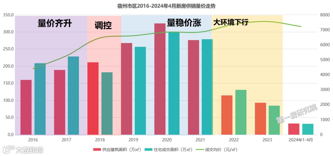 总的来看宿州供地节奏较好,市场健康,整体处于供不应求的状态,个别年份地价及住宅售价出现跳涨。新房近2年周期性回调,市场处于去库存阶段。