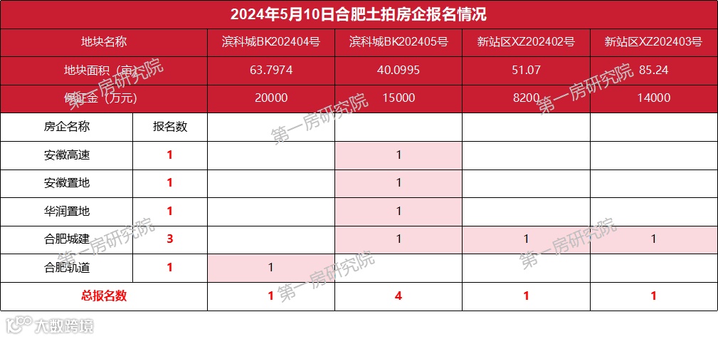 从曝光的名单来看,滨科城BK202404号地块合肥轨道报名,滨科城BK202405号地块安徽高速、安徽置地、华润置地、合肥城建四家房企报名,新站区XZ202402号地块和新站区XZ202403号地块都是合肥城建报名。