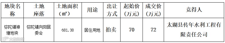 太湖县传年水利工程有限责任公司拿下太湖县1宗居住用地,总成交价72万元