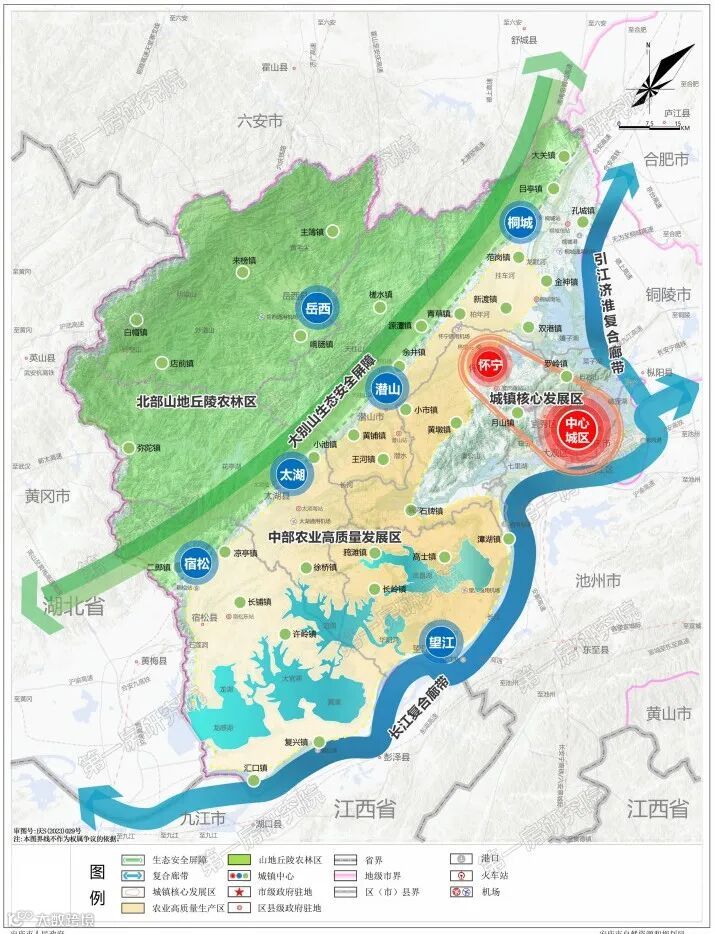 国家历史文化名城、国家园林城市、国家森林城市、长三角中心区城市、大黄山世界级休闲度假康养旅游目的地。在《安庆市国土空间总体规划(2021-2035年)》批后公开文件中提到,安庆市将落实安徽省“一圈两屏三带五区”的国土空间总体格局,统筹国土空间安全与发展,构建“一屏两带三区多中心”的市域国土空间总体格局。