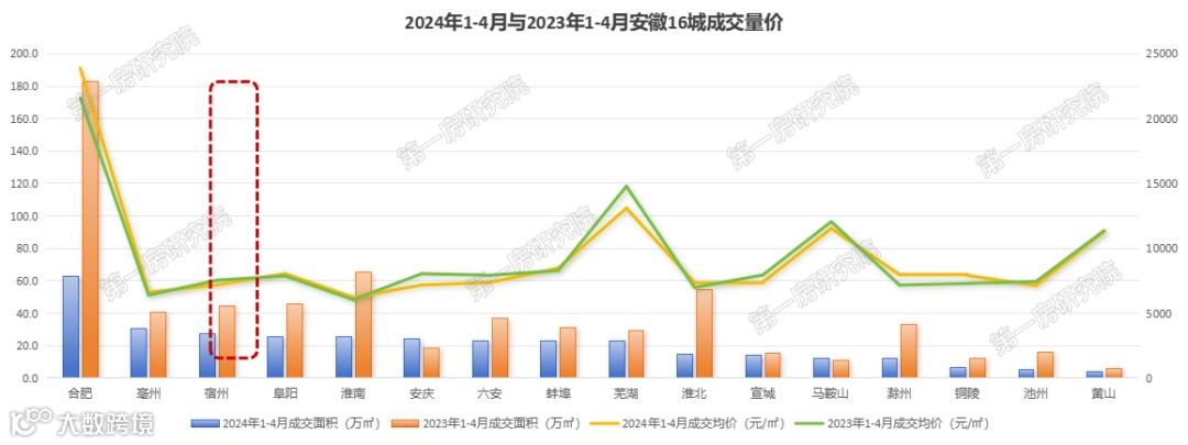安徽整体市场在春节、清明、五一等返乡节点刺激下,置业部分地市整体备案量环比小幅回升,但同比仍处于历史较低水平,市场销售压力仍大。2024年1-4月安徽16城市市区新房销售333.7万方,同比下跌48.1%,仅2城同比上涨,其余14城同比下跌,成交均价同比下跌6.3%。