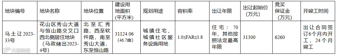 马鞍山暂定7月6日拍卖1宗涉宅用地,起拍价31300万元!