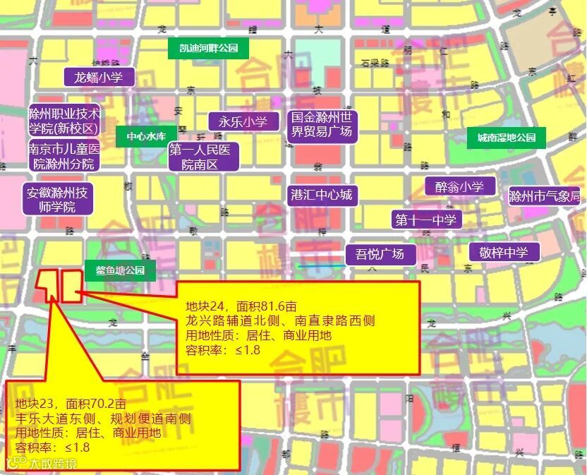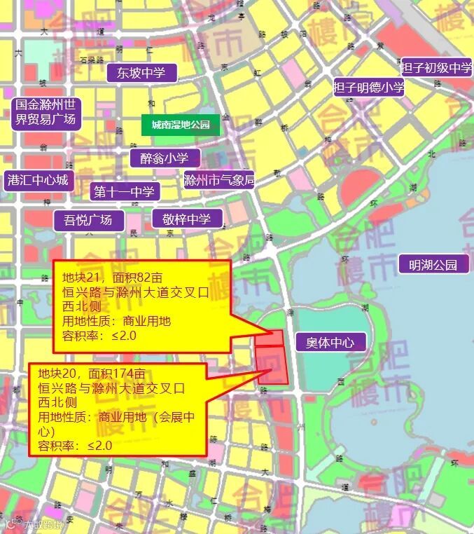 地块20:面积174亩,位于恒兴路与滁州大道交叉口西北侧