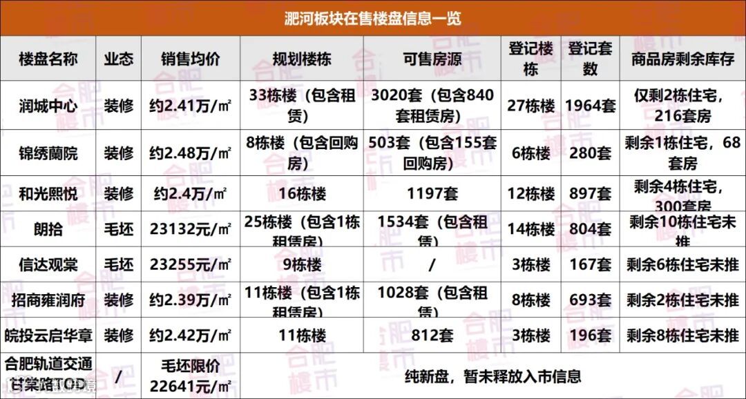 具体的供求关系上,目前的淝河板块,主要在售楼盘有: