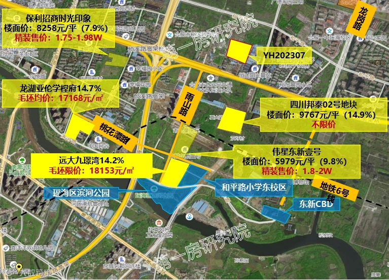 瑶海区YH202307号地块位于东部新中心位置,定位能级高,规划完善,未来可期。目前板块内共5个项目,在售项目保利招商时光印象、远大九璟湾和伟星东新壹号,其中伟星东新壹号项目为瑶海首个摇号项目,龙湖亚伦学堂府目前已经售罄,四川邦泰02号地块待入市,整体板块热度较高,同时竞品压力较大。