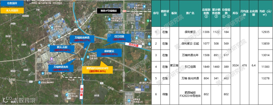 作为肥西“三区一带”重点发展的片区,紫云湖片区侧重于“产”,主导功能为研发孵化+国际社区+智造服务,打造“创智谷”。紫云湖片区聚焦肥西打造的新能源“汽车+光储”、高端智能制造、“产学研”一体化大健康三大战新产业集群,目前药谷、阳光电源、华晟新能源、力劲科技、易事特、泰禾光电、亿帆医药等一大批战新产业龙头企业聚集,轨道交通4号年内开通运营,紫云湖也迈入地铁时代,大大提升片区通勤时间。随着安徽大学落户,不仅为片区产业提供人才,而这些人才也将在紫云湖片区置业,房地产市场发展前景可期。目前紫云湖板块是肥西性价比最高的板块,板块流速仅次于泛经开,排名第二,单盘月均流速第一。2023年仅1宗地出让,市场补仓正当时。