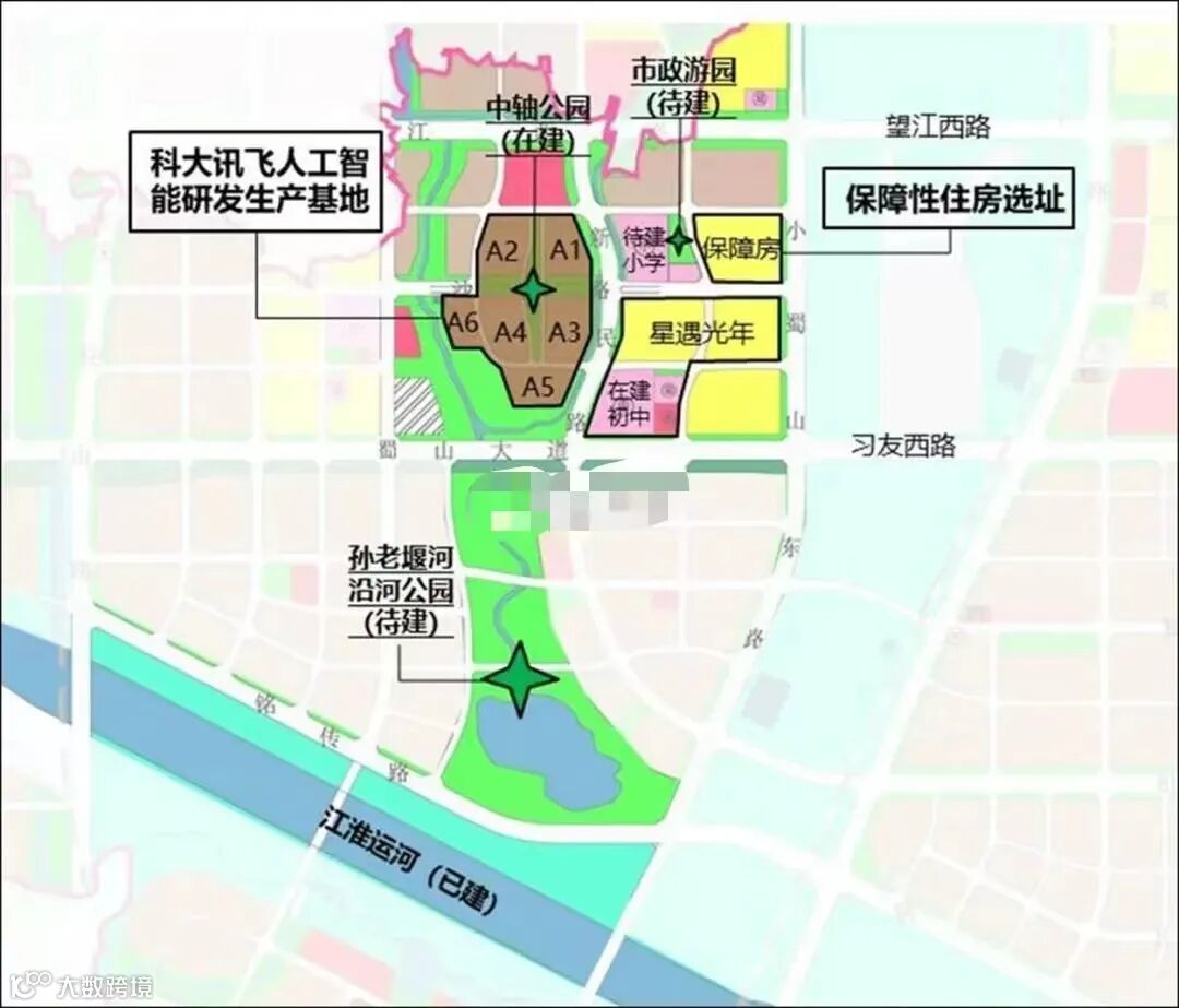 根据官方规划,科大硅谷先期规划建设“一核两园一镇”功能承载区。其中的“一镇”,就是指“讯飞小镇”,占地面积约6000亩。