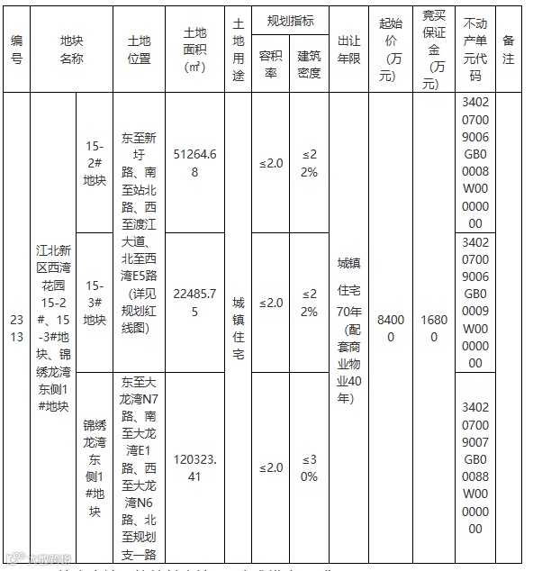 (四)保证金处置方式:竞得人签订《国有建设用地使用权出让合同》后,已缴付的竞买保证金16800万元转作履行合同定金(不计息),合同履行后,转作第一期土地出让金(不计息)。未成交者在拍卖结束后退还保证金(不计息)。对虽已报名登记但不参加竞买
