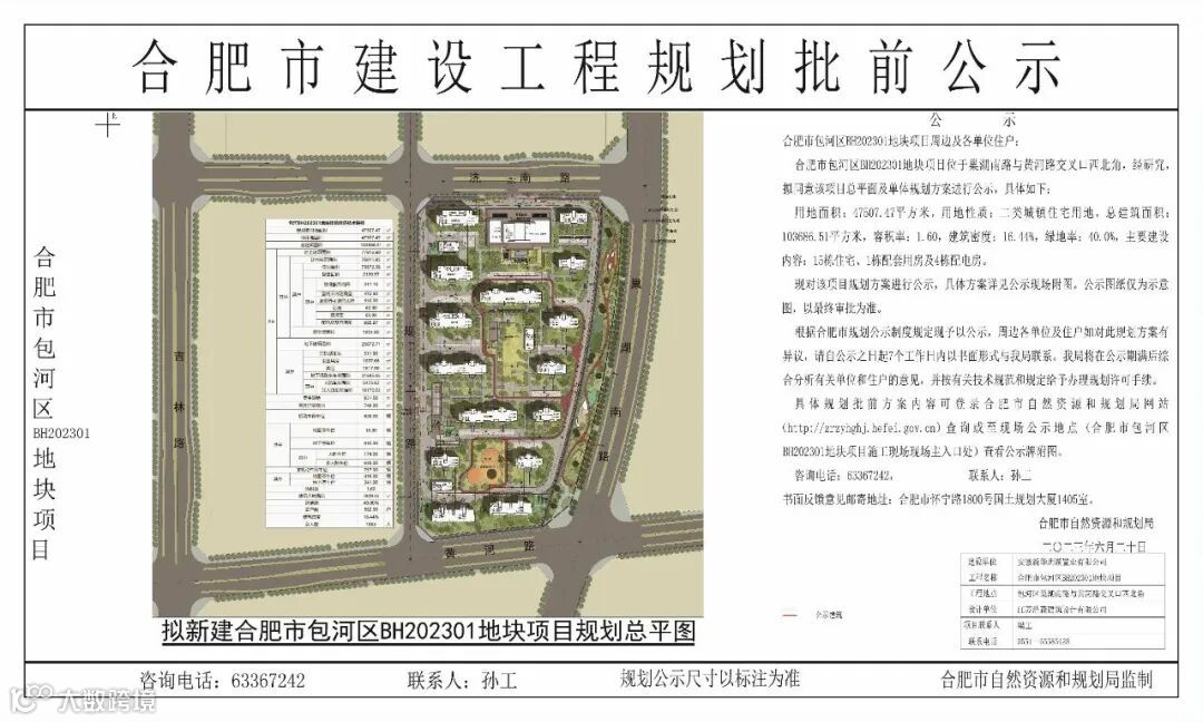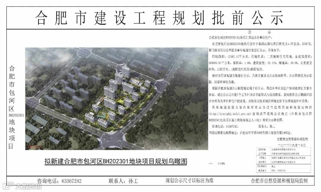 2023年6月20日合肥市自然资源与规划局网站公示了BH202301号地块最新规划!