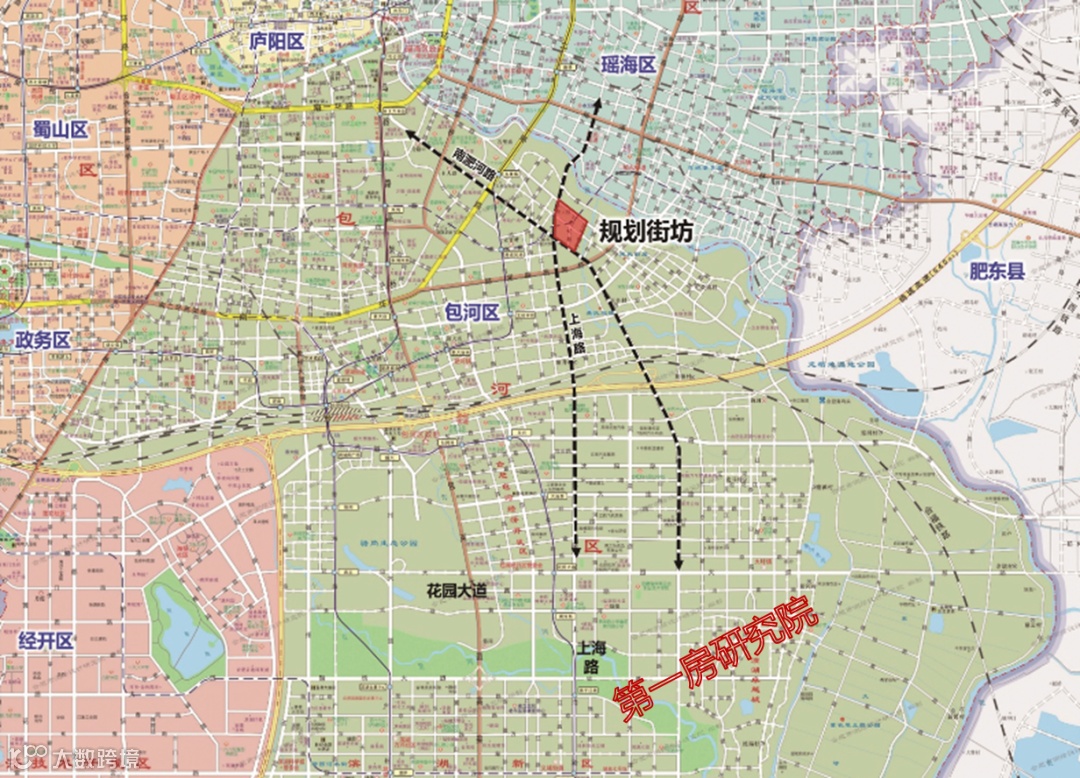 从合肥城市更新专项规划图上看,合肥规划了规划老城、科大硅谷、东部新中心、骆岗公园4大更新示范区,并规划有一横一纵以长江路、徽州大道为主的城市更新引导轴。其中包河区共有6大城市更新片区,而公示的街坊正处于BH-05城市更新片区。