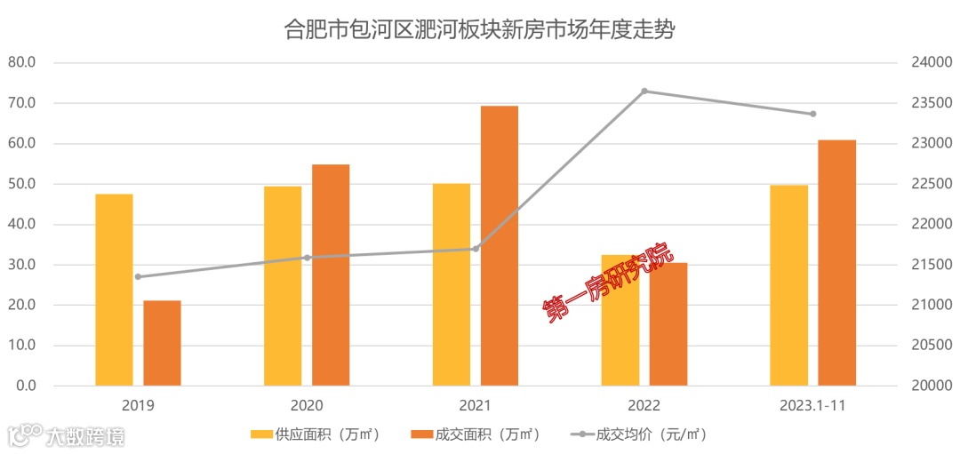 近4年包河淝河板块新房市场年均供应44.9万㎡,年均成交44万㎡,供求几近平衡,成交均价也在稳步攀升。今年1-11月份累计供应49.7万㎡,成交60.9万㎡,成交均价23368元/㎡。