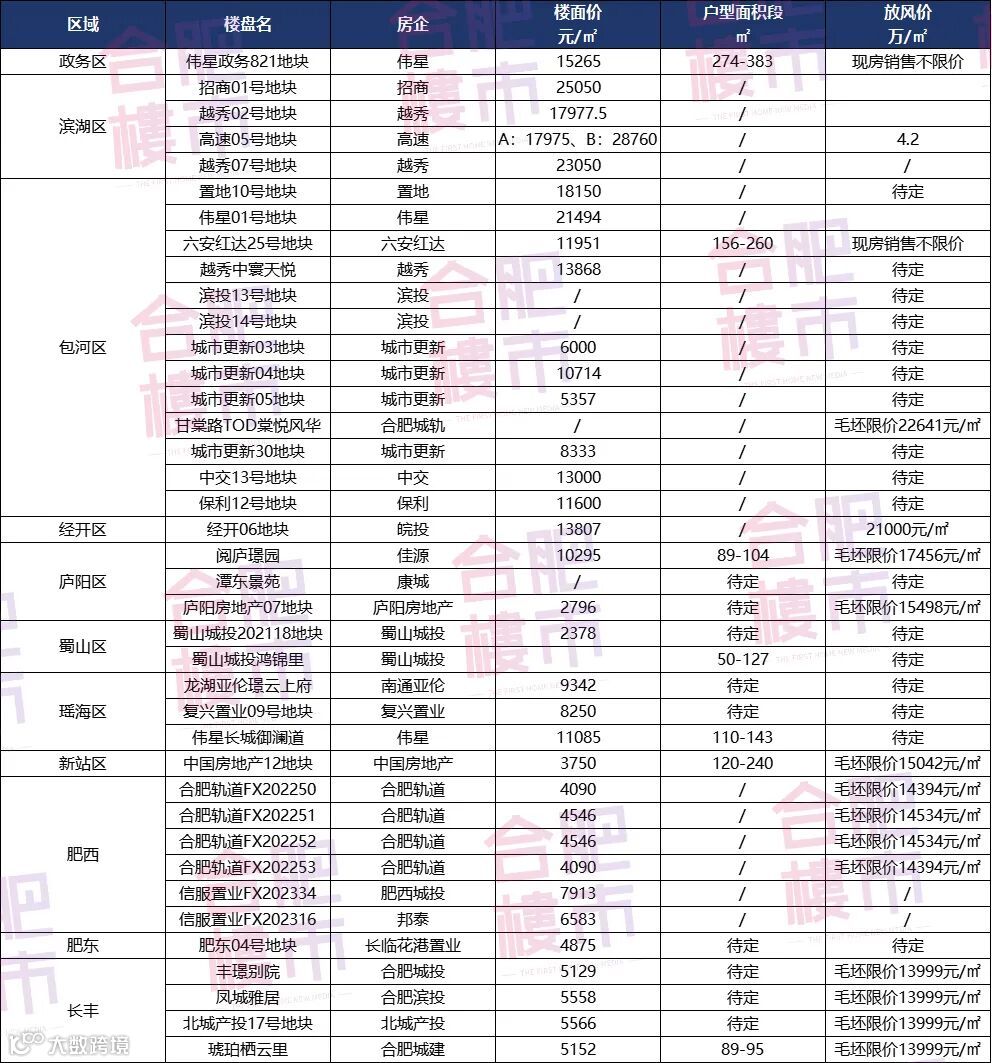 伴随新一批高价盘入市,合肥包河、蜀山、经开等盘均突破3万大关,滨湖、政务楼盘冲破4万。