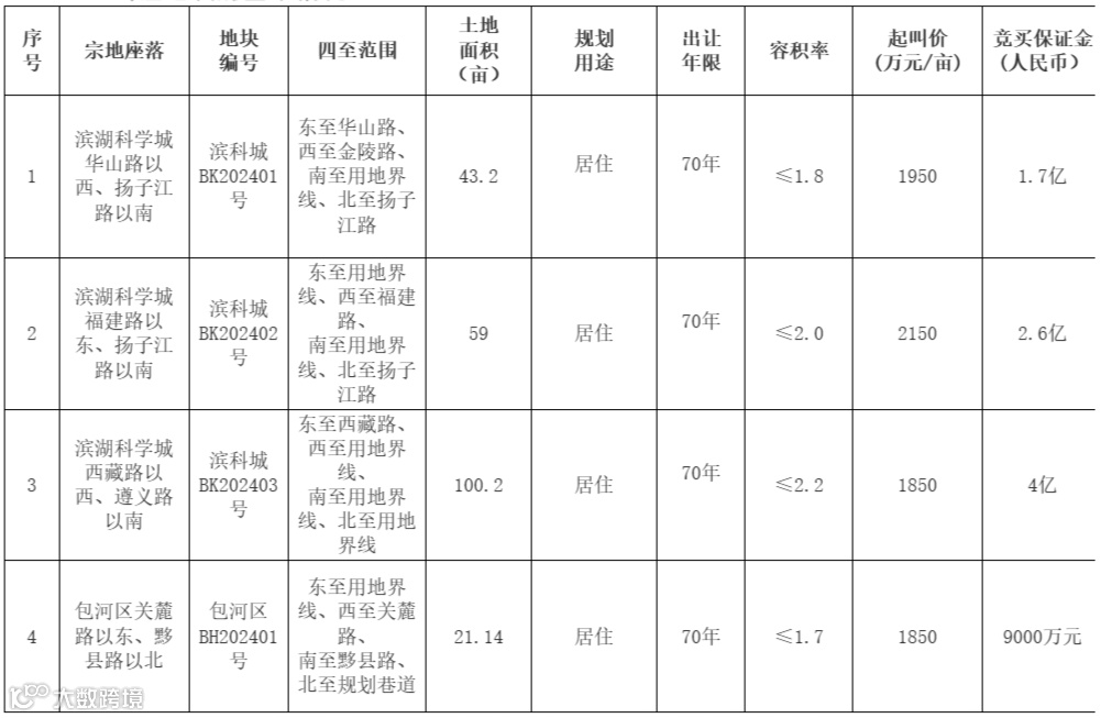 滨科城BK202401号、滨科城BK202402号、滨科城BK202403号、包河区BH202401号地块竞买人须为企业法人。该企业法人须具有中华人民共和国境内房地产二级以上(含二级)开发资质且注册资本金不低于1亿元人民币。