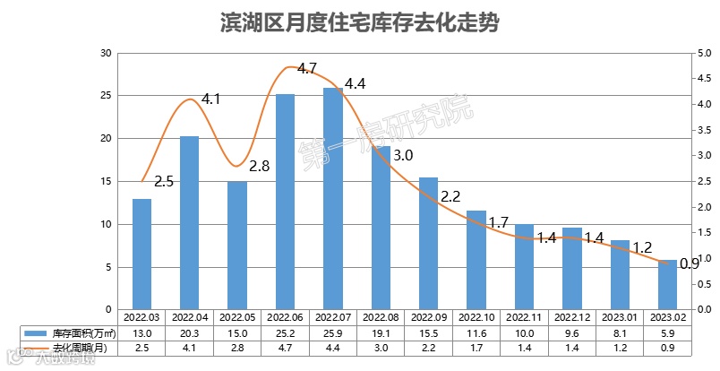 纵观大滨湖近12个月存量走势,2022年6月至今,滨湖显性存量在逐月走低,截止至2023年2月底,显性存量去化周期0.9个月。狭义存量去化周期0.9个月什么概念?按现在的销售速度,滨湖区的新房不取预售证的情况下,不到1个月,整个滨湖就断货了,非常夸张。