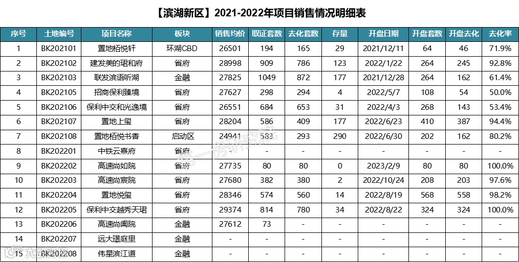 纵观滨湖2021-2022年上市的项目销售情况,11个已开盘项目中有6个当天去化率高达90%以上,10个项目摇号开盘。一房难求的局面成了滨湖买房的常态。分板块来,新房主要集中在省府和金融板块,而省府板块热度明显高于金融板块。对于滨湖即将入市的3个新项目来说,中铁云熹府预计后期热度最高。