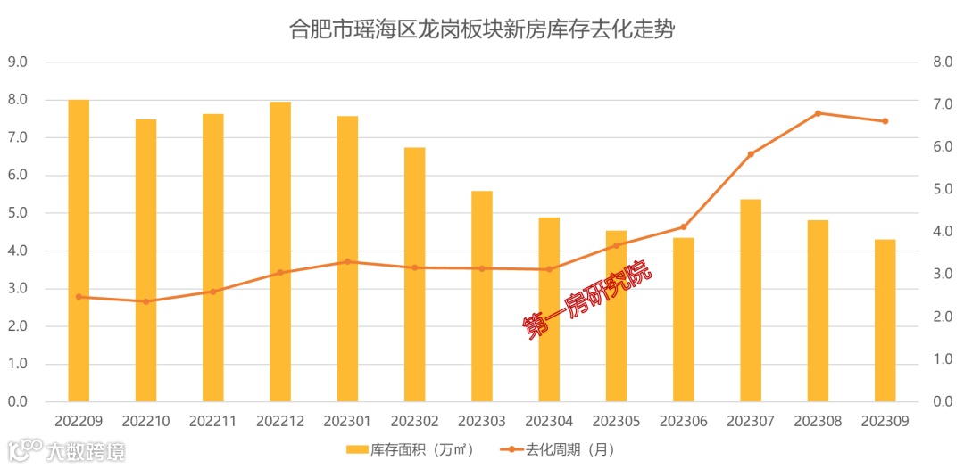 截止到9月份,合肥市瑶海区龙岗板块新房库存为4.3万㎡,去化周期为6.6个月,板块市场健康。