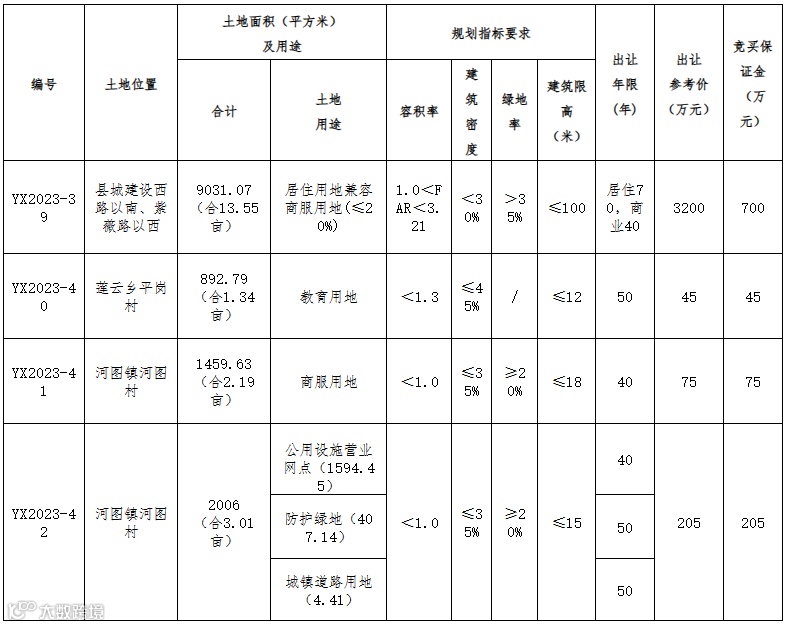 导读:经岳西县人民政府批准,我局决定公开拍卖出让YX2023-39、YX2023-40、YX2023-41、YX2