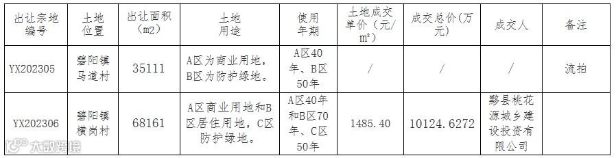 根据《招标拍卖挂牌出让国有建设用地使用权规定》(国土资源部令第39号),现将黟县国有建设用地使用权挂牌出让成交结果公示如下: