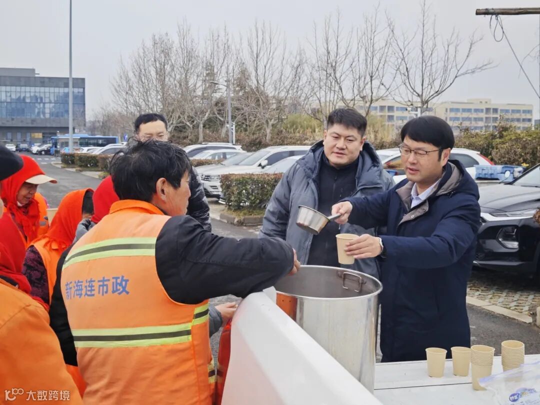 3月4日早上,新海连集团副总经理张猛带队,看望慰问坚守在扫雪除冰第一线的市政工人,查看重点路段扫雪除冰工作情况,市政公司相关人员陪同慰问。