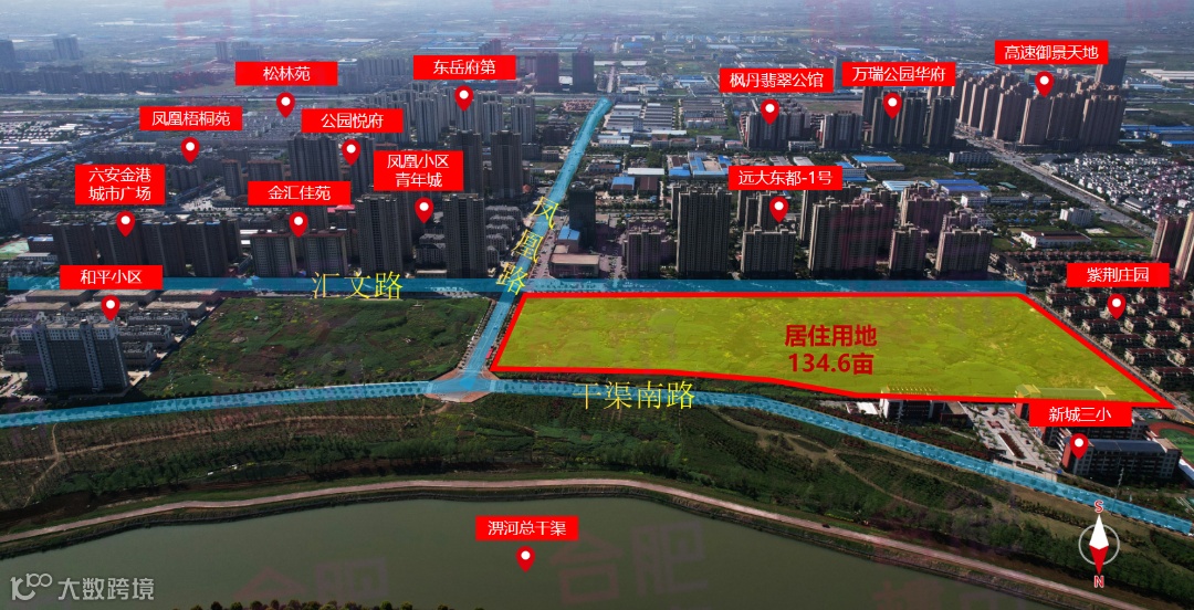 周边有六安市精神文化地标、国家非物质文化遗产皋陶文化园陵;东侧为杭淠干渠,生态环境优美。地块1公里范围内商业资源、教育及医疗资源丰富,生活便捷、配套齐全,人口聚集度高。