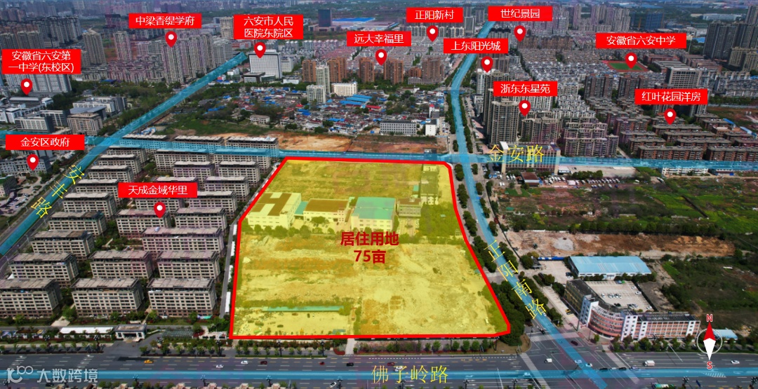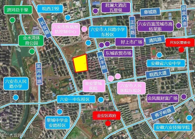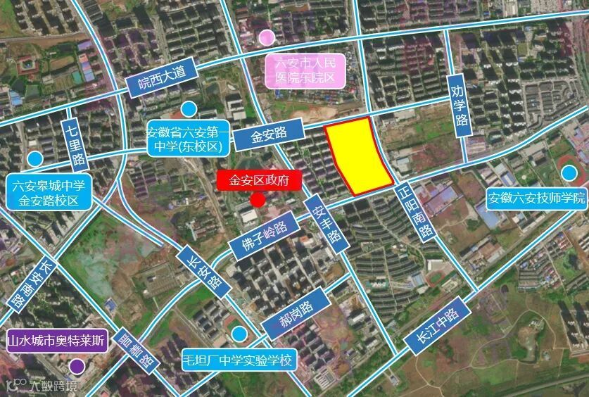该宗地位于六安老城区,紧邻城区主干道皖西大道,西邻主城区快速通道长安路,交通便利,是临淠河右岸居住区域的绝版地块。