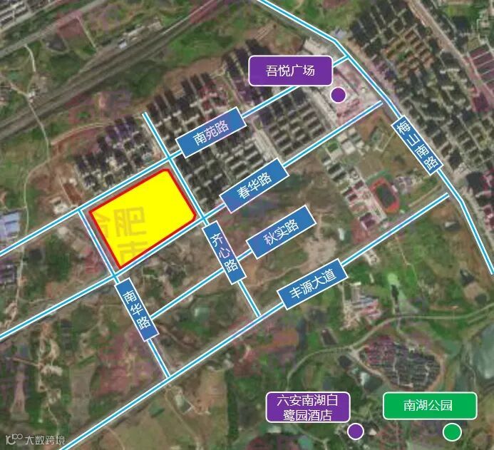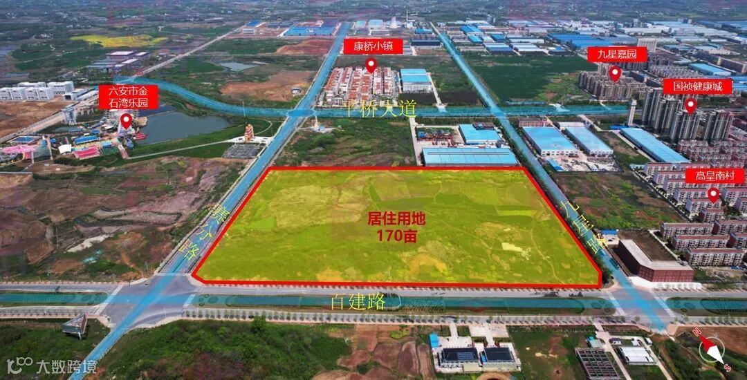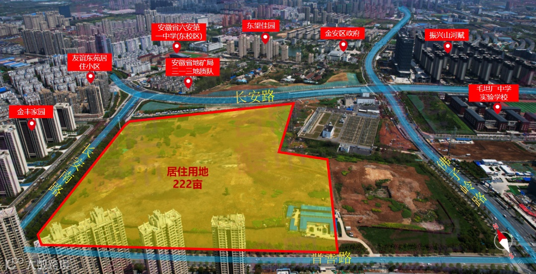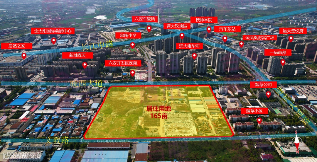 该宗地位于六安市城市主干道皖西大道以北,距通往合肥的快速通道长江路不到1公里,紧邻合六市域郊轻轨站点,距六安高铁北站(在建的国家一级站)8分钟车程。