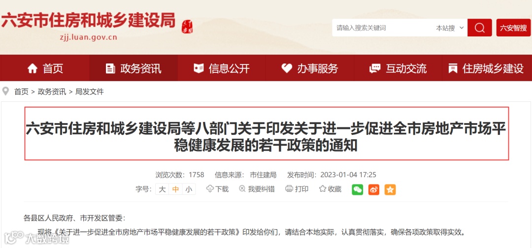 作为长三角一体化发展城市,合肥都市圈副中心城市,大别山区域中心城市,六安在今年1月份出台了《六安市住房和城乡建设局等八部门关于进一步促进全市房地产市场平稳健康发展的若干政策的通知》。