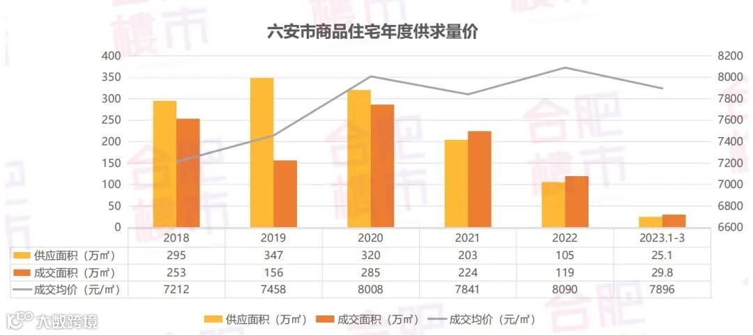 可进入到2023年以来,六安新房成交量大涨。今年2月份、3月份的成交面积,都是成交远远大于供应。