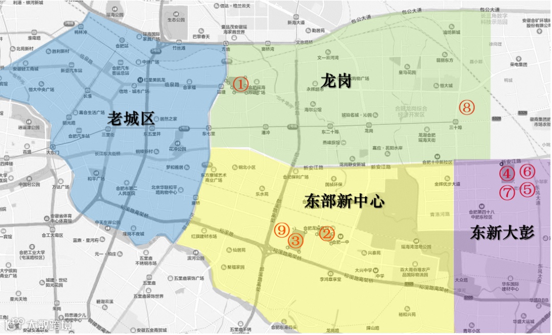 东部新中心规划区域总面积34.1平方公里,涉及瑶海、包河和肥东等多个区域,建成后将与老城区、政务文化新区、高铁南站区、滨湖新区等构成合肥市主城区“钻石型”主中心体系;