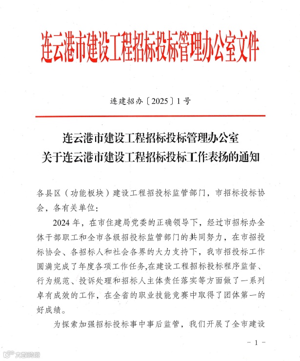1月20日,新海连集团荣获2024年市建设工程招标投标工作“履行招标人主体责任先进单位”,项目管理部靳晓芳同志荣获“履行招标人主体责任先进个人”。