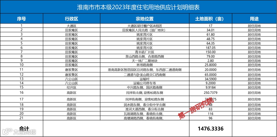 结合今年的出让计划和土地成交情况,预测明年将有以下21宗1476亩居住地块待出让,主要集中在田家庵区和高新区。