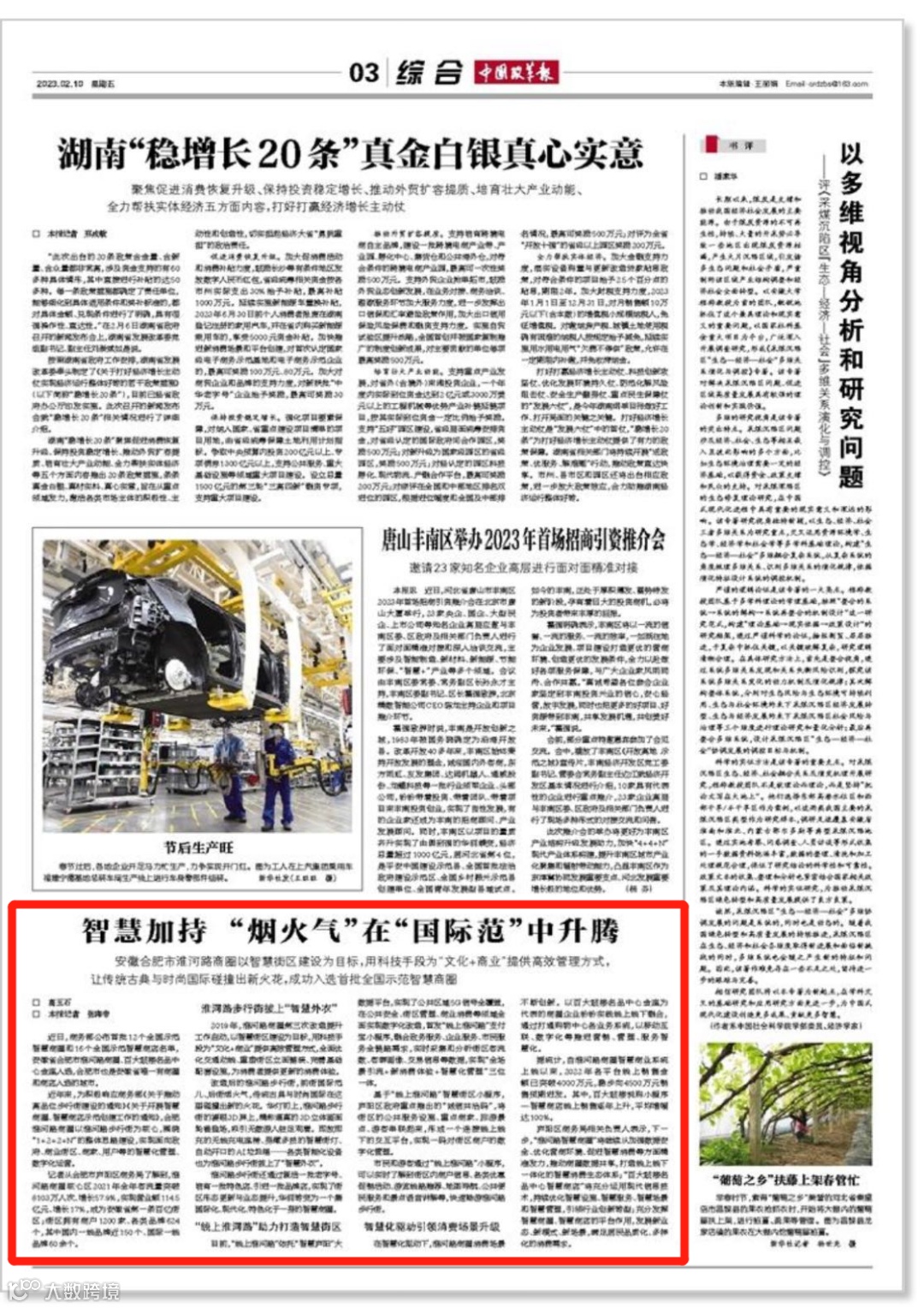 2月10日,《中国改革报》报道淮河路商圈,题为智慧加持“烟火气”在“国际范”中升腾,点赞智慧街区建设,科技手段为“文化+商业”提供新方式。