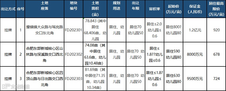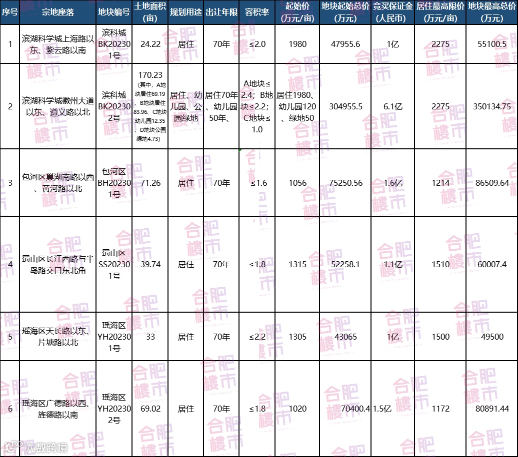 6宗地块指标详情一览,合肥楼市制图,侵权必究